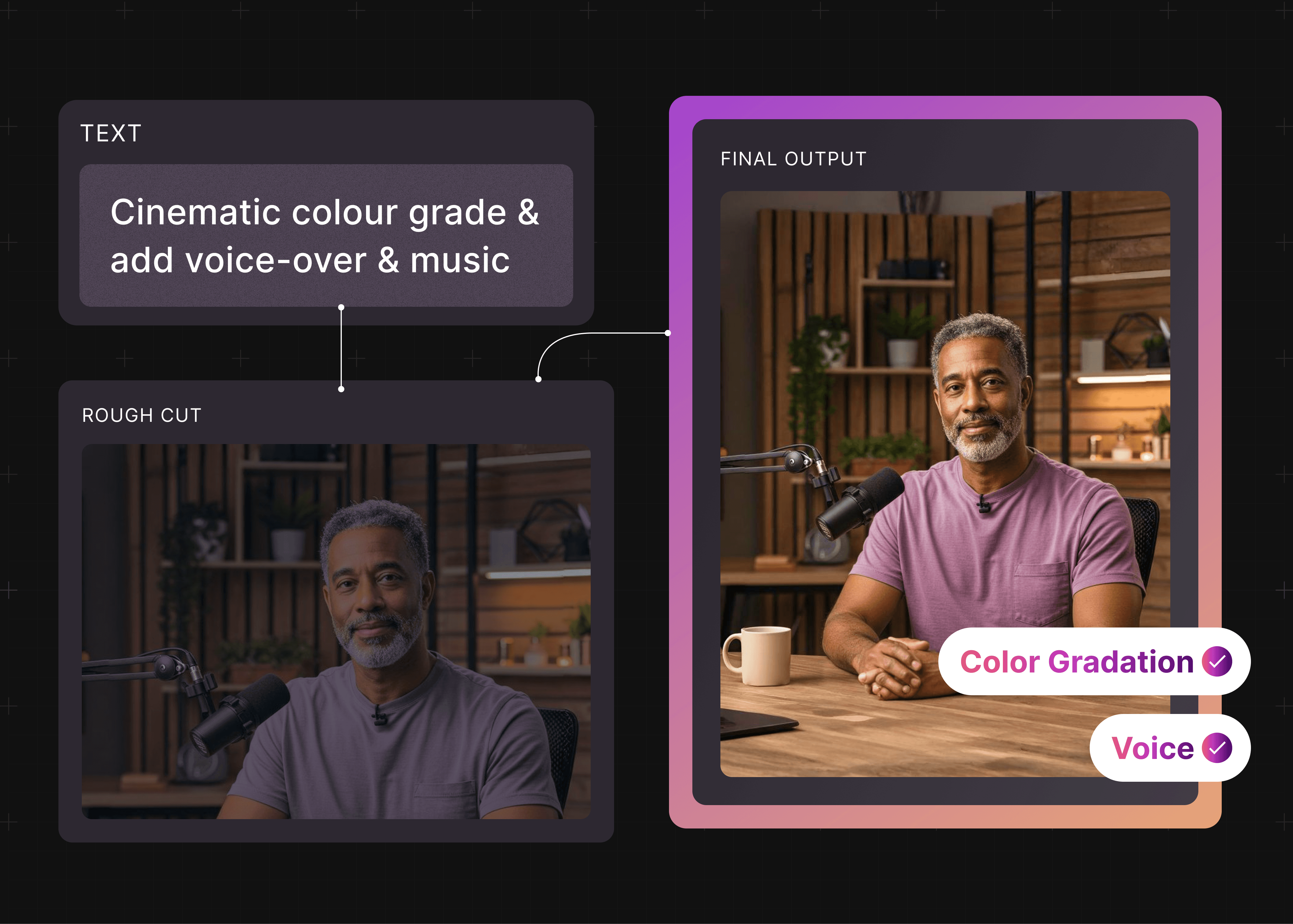 Start with a script or upload your raw talking head footage. Keyframe understands pacing, tone, and structure automatically.